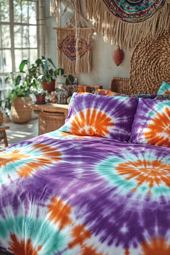 Craving a bedroom that radiates carefree, artistic energy? Tie-dye bedspreads bring a vibrant, bohemian vibe that’s impossible to ignore. They’re perfect for expressing your free spirit and adding a splash of color to any space. If you want your bed to be a focal point of fun, this idea is your answer.