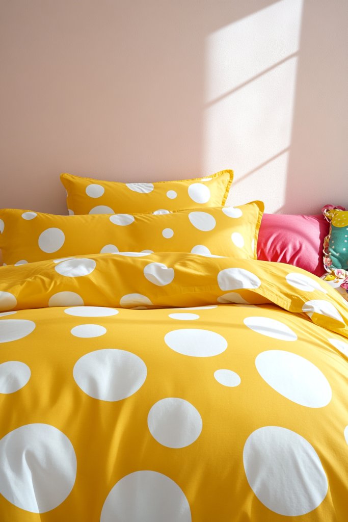 Looking for a playful yet simple way to jazz up your bedroom? Polka dots on bright backgrounds offer a cheerful, timeless pattern that appeals to all ages. They add a sense of fun and lightheartedness without overwhelming your decor. If you want an easy upgrade that makes a big impact, this idea is perfect.