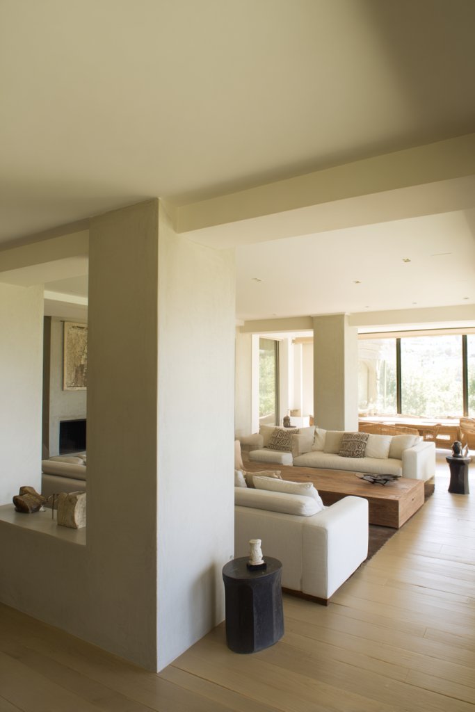 Imagine wide glass panels that slide open to reveal a lush patio with a dining table and lounge area. The seamless transition creates an expansive space, perfect for sunny days or starry nights. Inside, a neutral-toned living room with soft textiles and warm lighting complements the outdoor scene. It’s a lifestyle that invites in nature’s beauty.