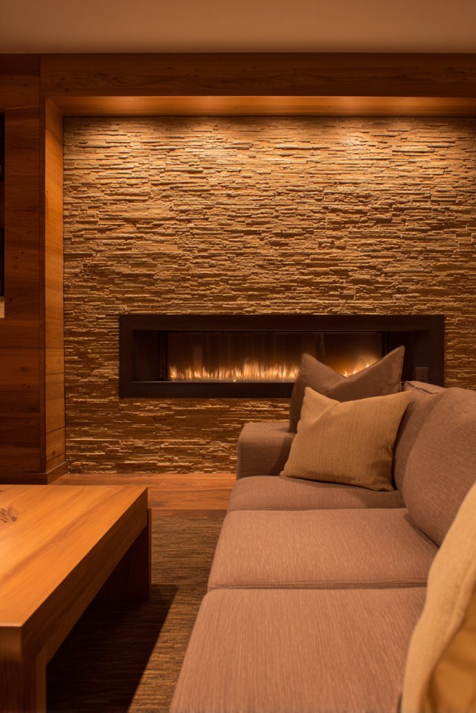 Picture a feature wall covered in 3D wall panels resembling natural stone or layered geometric shapes. Alternatively, a wall painted with a textured technique like sponging or rag-rolling creates a subtle, tactile pattern. Add metallic or matte paint to highlight textures, and complement with minimalist furnishings to keep the focus on the wall. The result is a space that feels curated and artful.