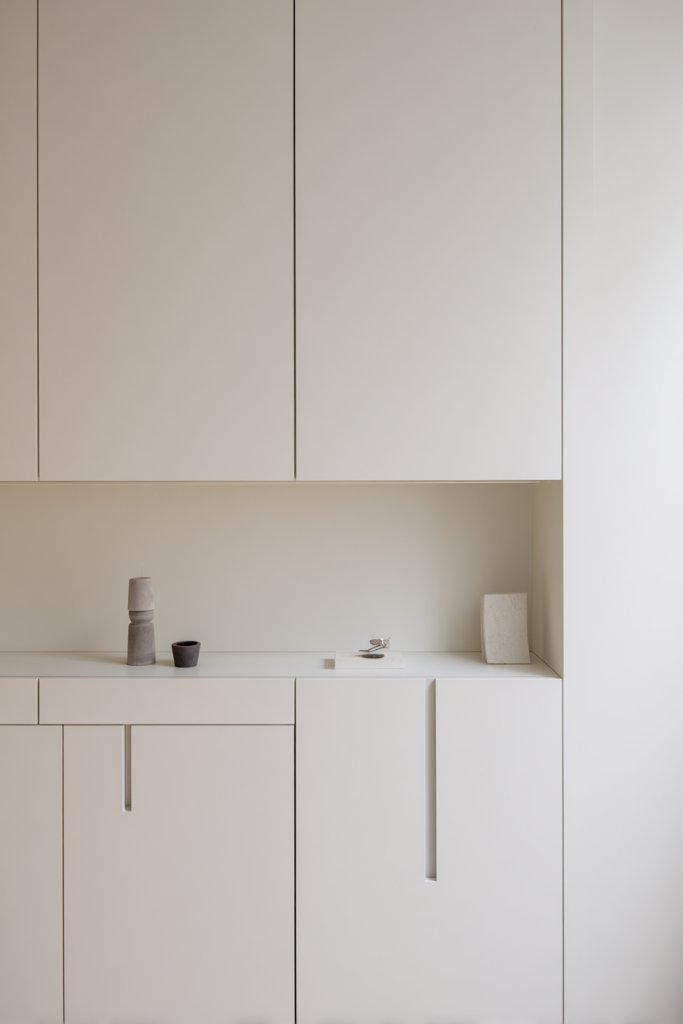 Imagine sleek, floor-to-ceiling shelves in a living room, filled with neatly organized books, baskets, and decorative objects—all seamlessly integrated into the wall. In bedrooms, built-in wardrobes with hidden compartments and drawers hide away clothing and accessories. In kitchens, custom cabinetry extends to the ceiling, offering ample storage without bulky furniture. It’s an organized, streamlined aesthetic.