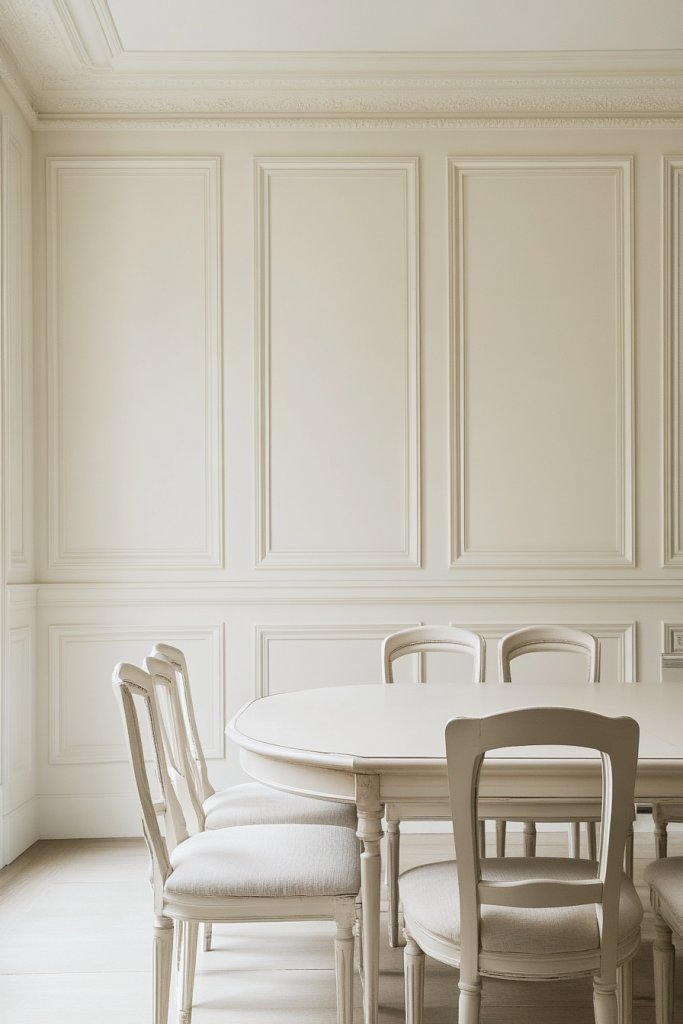 Want a dining room that feels fresh, clean, and effortlessly versatile? Crisp white with warm undertones provides a bright backdrop that adapts to any decor style. It reflects light beautifully, making the space feel larger and more inviting. If you’re after a timeless, neutral canvas, white is your best choice.