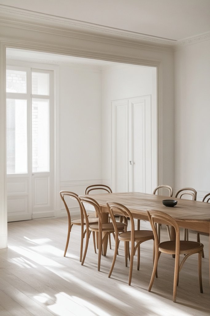 Select a matte or eggshell finish for walls to keep the look soft and understated. Incorporate natural materials like rattan, linen, or cork to enhance the organic feel. Use layered lighting—think sconces, candles, or soft LEDs—to create a gentle ambiance. Keep clutter minimal, and add textured textiles like a linen tablecloth or woven placemats for warmth.