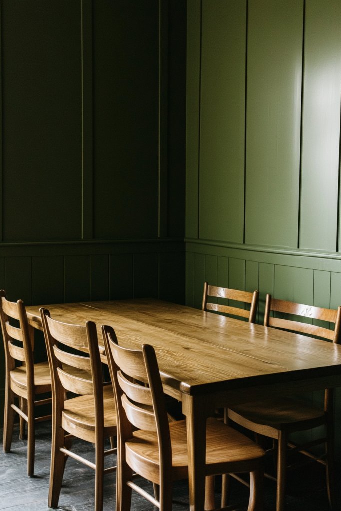 Searching for a color that adds depth and a sense of groundedness? Deep olive green offers a rich, earthy tone that fosters a cozy, intimate atmosphere. It’s perfect for those who want their dining space to feel warm, inviting, and a little bit luxurious. If you love nature-inspired decor, this hue is a winner.