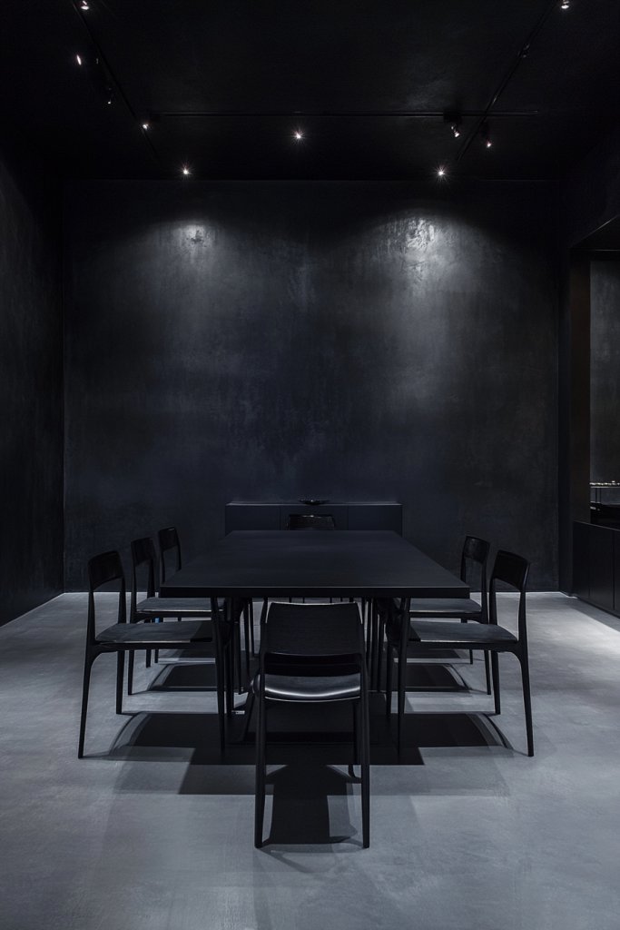 Imagine walls painted in a deep, matte charcoal, contrasted by light wood furniture and soft textiles. Ambient lighting reflects off the dark surfaces, adding a sense of depth and intimacy. Metallic accents—think silver or chrome—add a polished touch, while textured fabrics soften the overall look. The space feels both powerful and refined, perfect for modern minimalism.