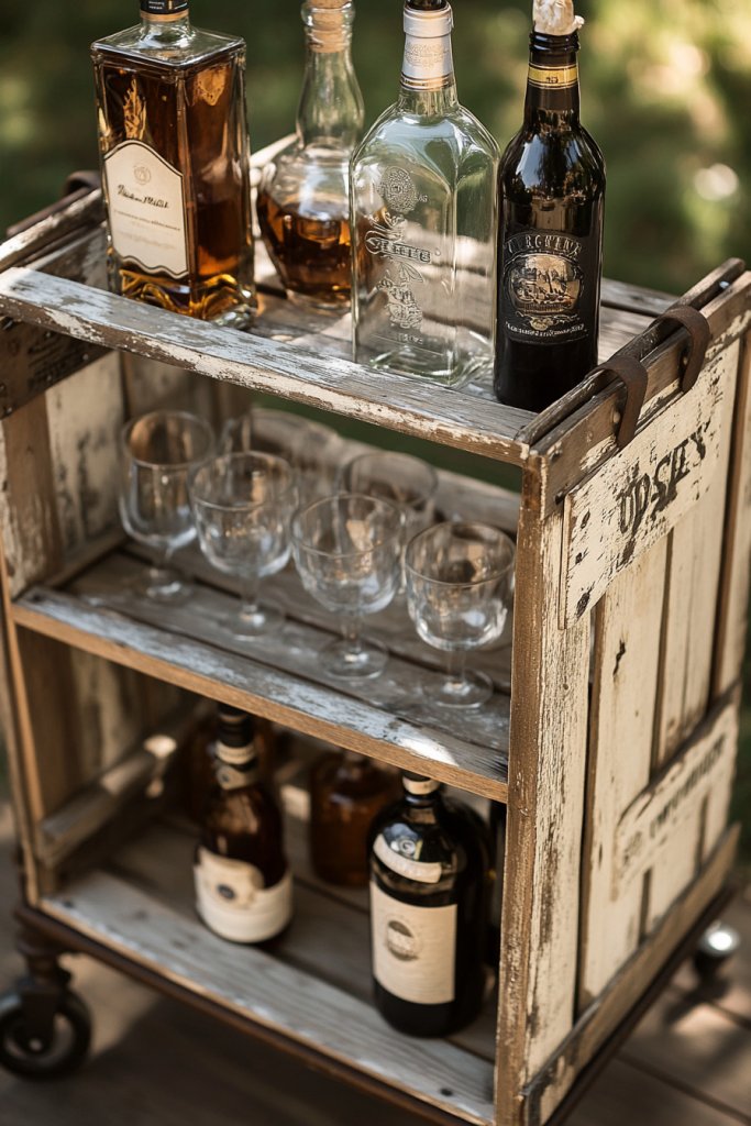 1. Repurposed Crate Bar Cart with Vintage Charm