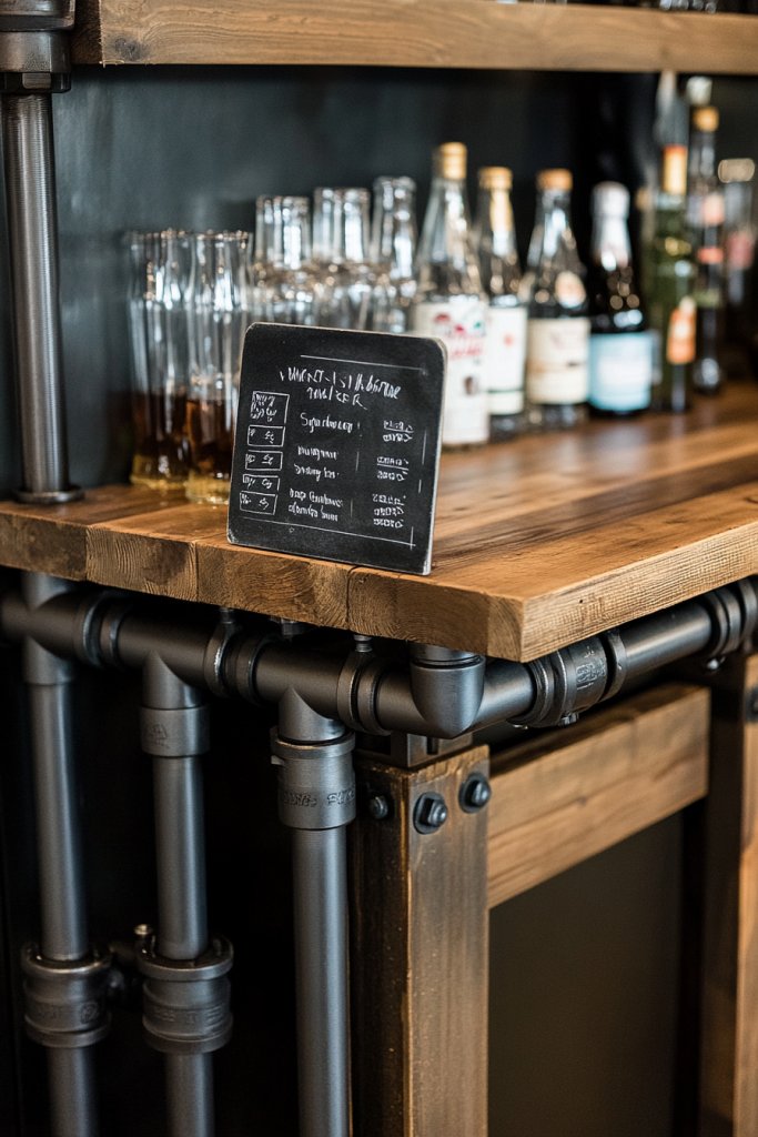 9. Pipe Clamp Cocktail Station with Chalkboard Menu