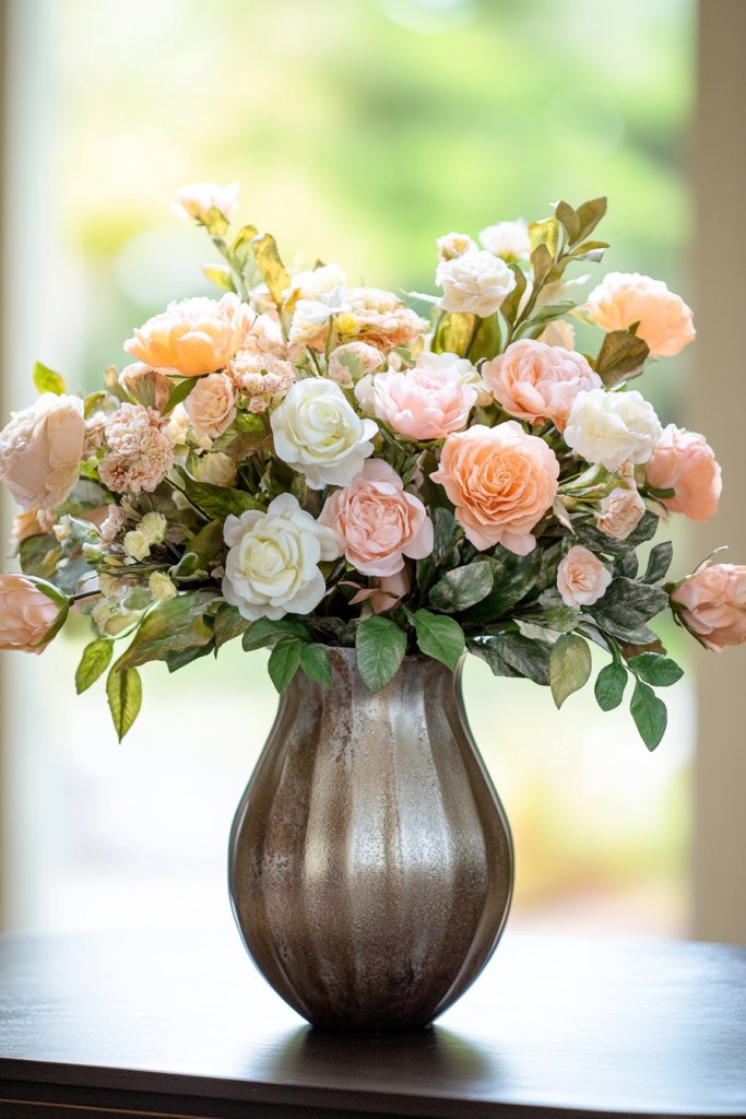 Select high-quality faux flowers with realistic details. Use a variety of shapes and sizes to create natural-looking arrangements. Place the flowers in stable, artistic vases that match your decor palette. Arrange the flowers with some asymmetry for a more authentic look. Keep the arrangements dust-free and replace as needed.