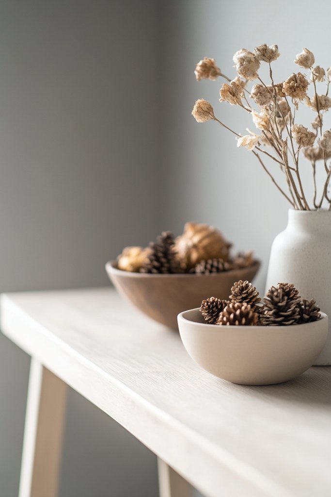 Visualize swapping out summer’s bright colors for warm tones in fall—think deep oranges and browns. Incorporate seasonal accents like faux pumpkins, acorns, or pinecones on trays or shelves. During winter, add cozy textiles, metallic touches, or holiday-themed decor. Spring calls for fresh blooms and pastel hues, brightening the space instantly. These small changes create a vibrant, dynamic entry.