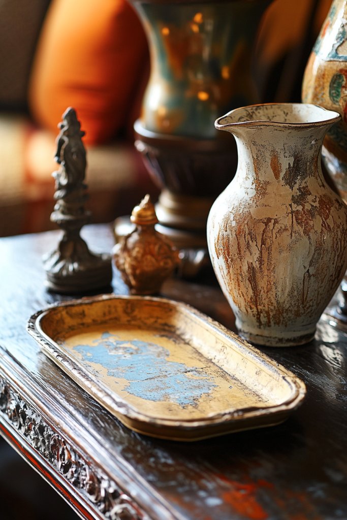 Mix vintage pieces with contemporary furniture for contrast—think modern console paired with antique accessories. Incorporate vintage textiles like embroidered pillows or woven rugs. During different seasons, swap out accessories for seasonal finds, like vintage holiday decor or seaside treasures. Use antique trays, bowls, or baskets to display smaller items stylishly.