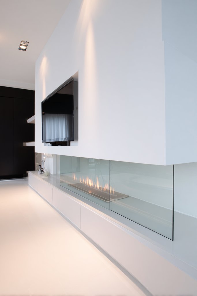 13. Minimalist Recessed Fireplace with Flush Mount TV