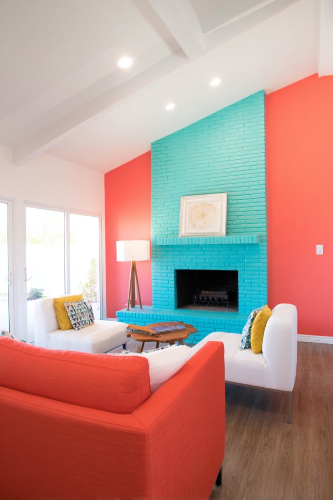 12. Colorful Tile or Paint Accent Wall with Fireplace