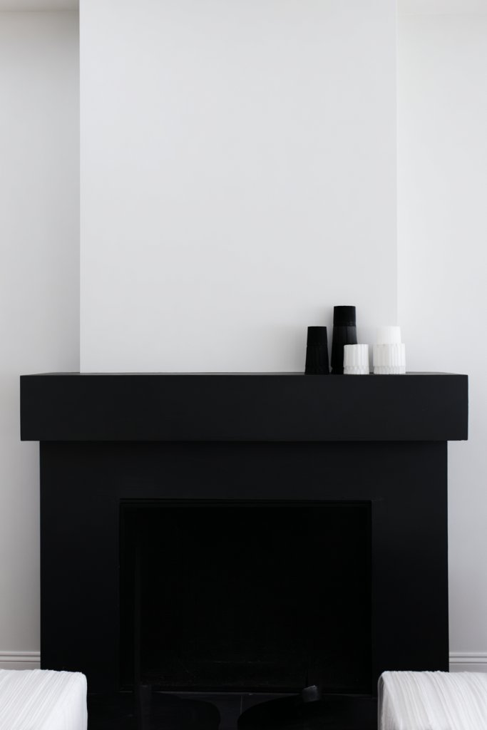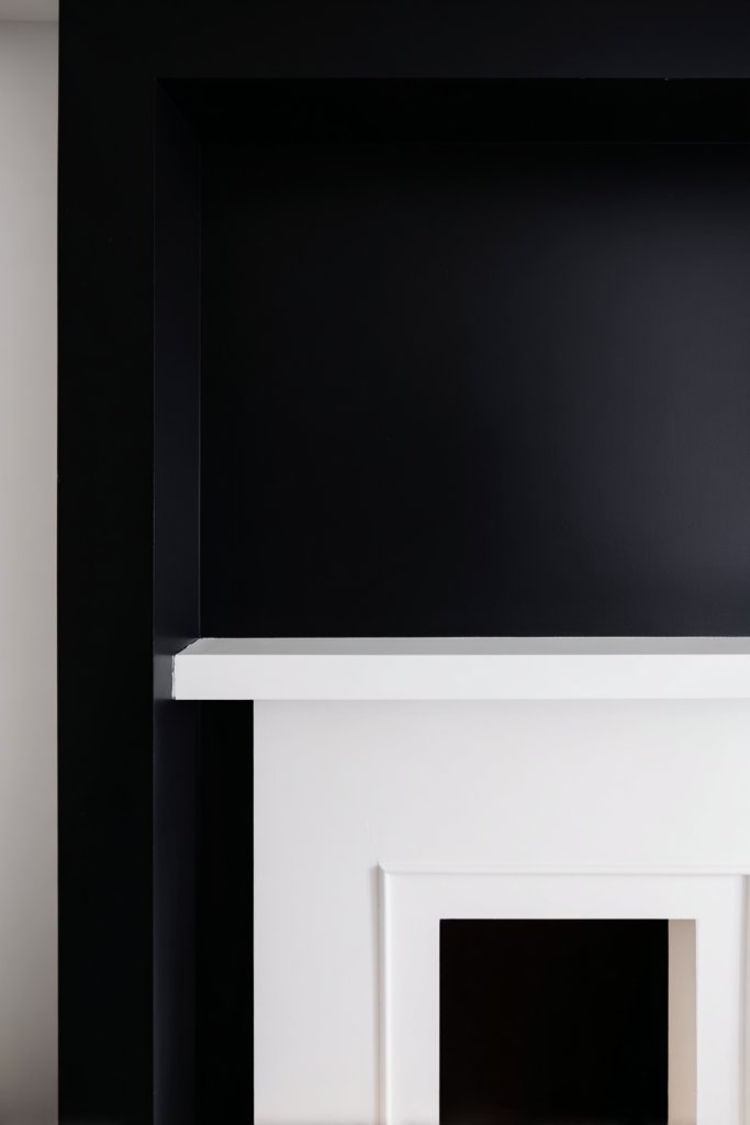 Picture a fireplace framed with matte black surrounds against a crisp white wall. The stark contrast draws attention immediately, making the fireplace the focal point. Accentuate with black accessories and white textiles for a cohesive look. The interplay of light and dark adds depth and drama, elevating your space to a gallery-like level of sophistication.