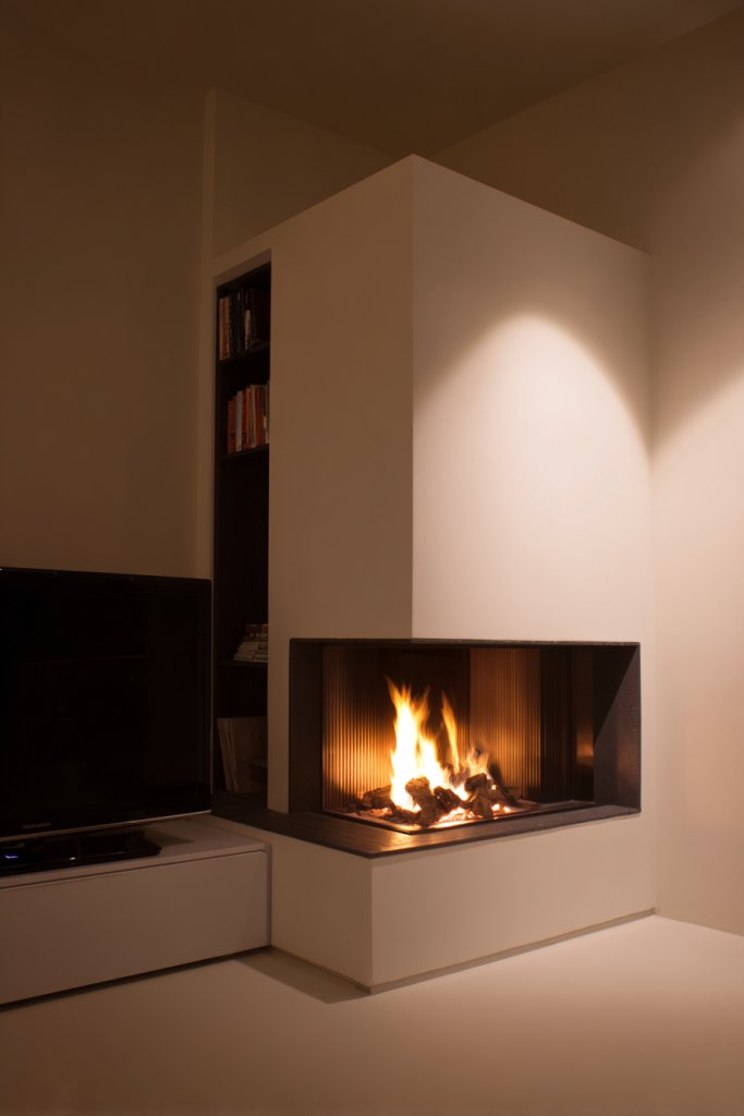 Visualize a sleek fireplace installed in the corner, with a modern or traditional surround that blends into your decor. Adjacent to it, a corner-mounted TV or a built-in bookshelf adds to the functionality. The fireplace’s warm glow highlights the corner’s architectural features, creating an inviting nook. The setup feels both intimate and efficient, perfect for small or open-plan spaces.