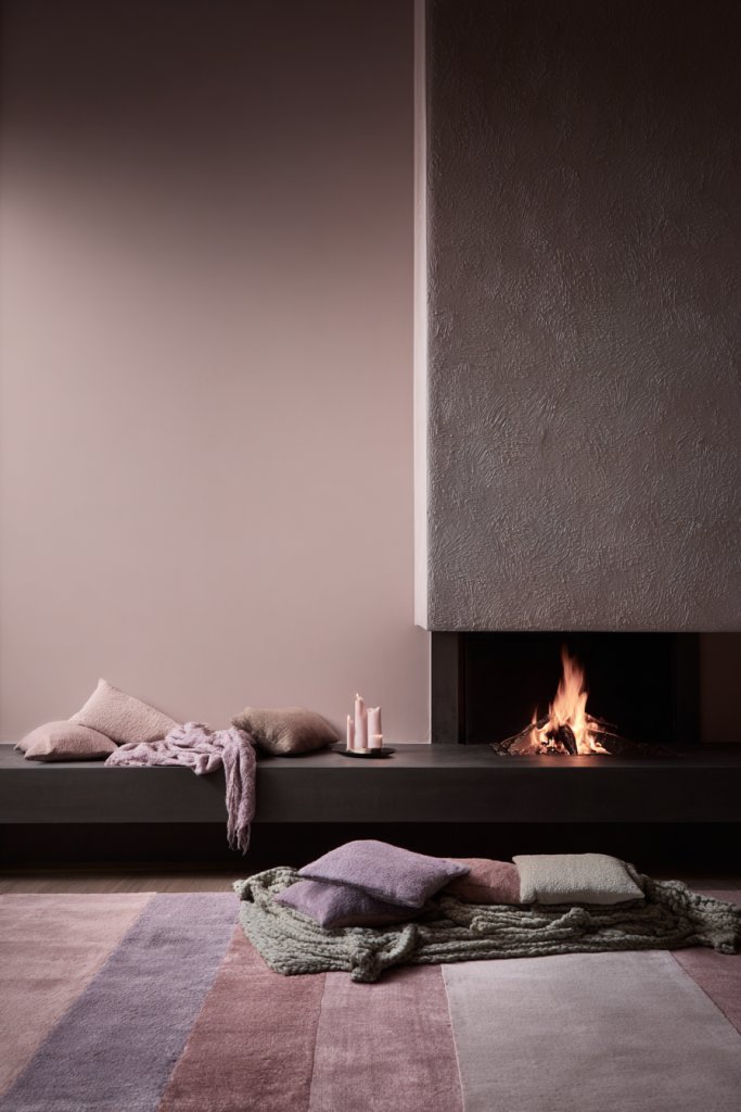 22. Soft Pastel Accents with Fireplace and Textured Wall