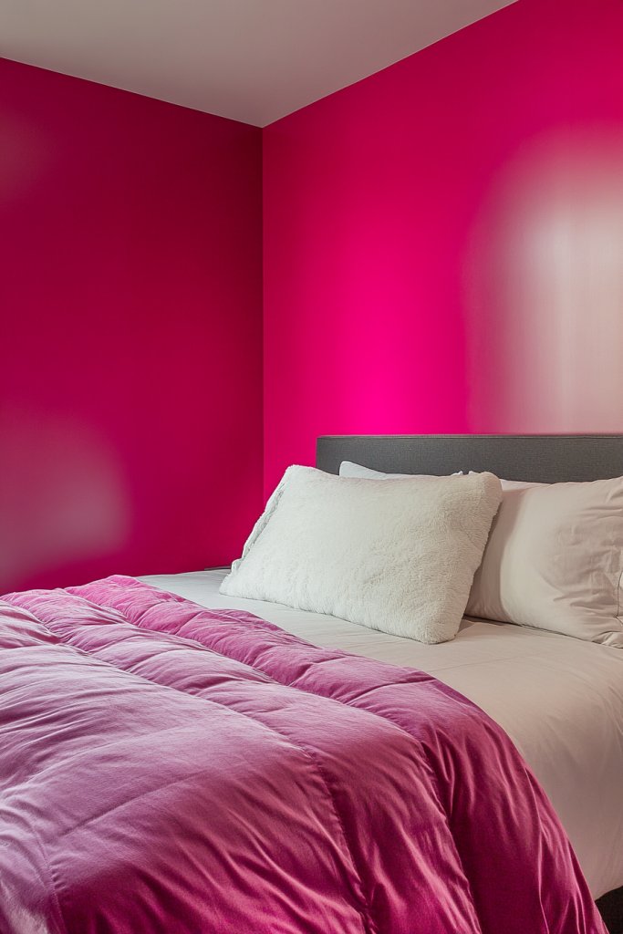 Ever feel like your bedroom just blends into the background, craving that wow factor? A bold pink accent wall can totally change the vibe, making your space feel vibrant and personalized. But choosing the right finish and tone can be tricky—do you go glossy or matte, bright or muted? If you want your bedroom to stand out without overwhelming, this idea is just what you need.