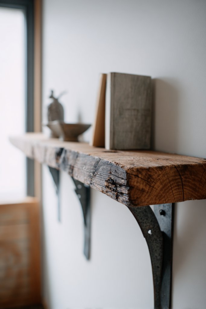 Use different sizes and lengths of reclaimed wood for variety. Choose brackets that contrast or complement the wood—metal, painted, or sculptural. Install shelves at varying heights for visual rhythm or symmetry for a more structured look. Mix in small decorative objects or plants (if you’re cool with restricted content) for added interest. Change the arrangement seasonally or as your taste evolves.