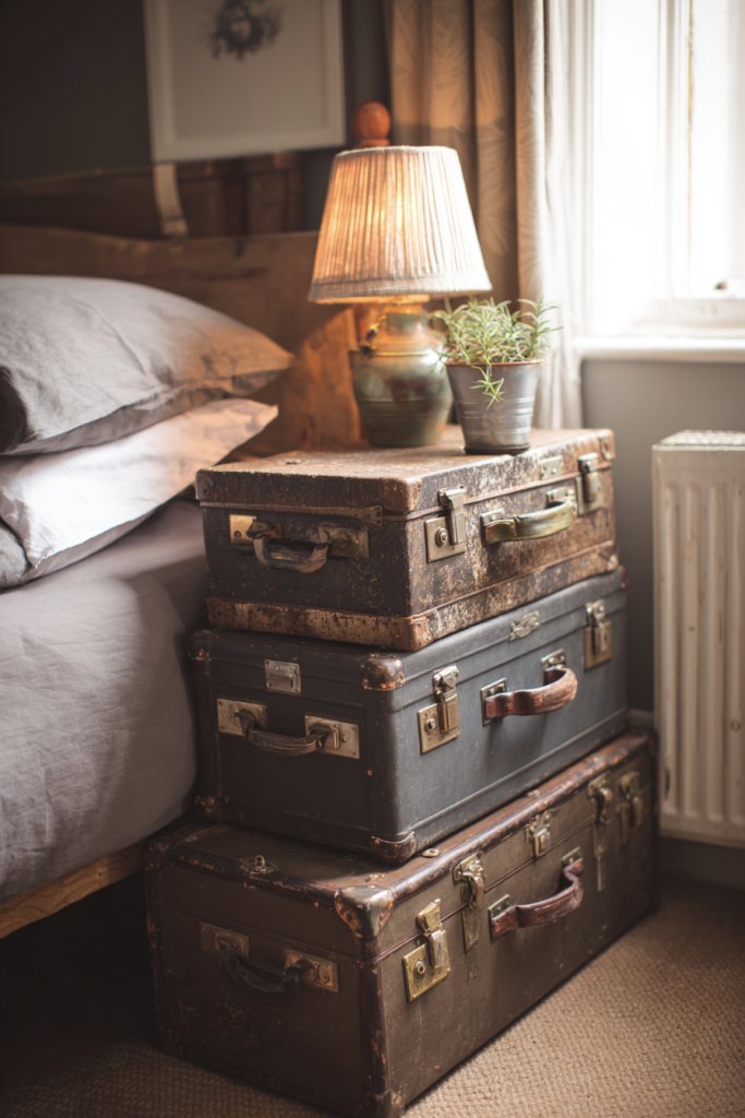 Source vintage suitcases or crates from thrift stores, flea markets, or online marketplaces. Clean and repair any damage, then add personal touches like paint or fabric linings. Use sturdy hardware or brackets if stacking multiple units. Place them strategically around your room for easy access and aesthetic appeal. For added durability, seal painted surfaces with clear matte varnish. Incorporate labels or tags for organization.