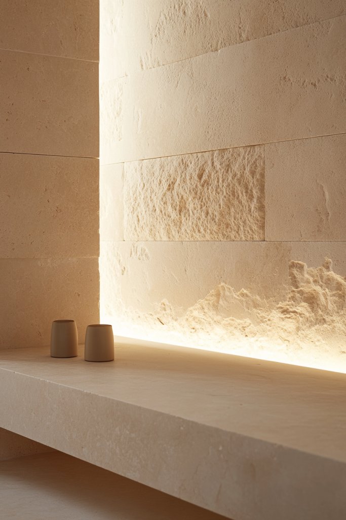 Add personal touches with soft textiles or art in neutral tones. Incorporate lighting that highlights the limestone’s subtle variations—think recessed or wall-mounted fixtures. Use furniture and decor in complementary shades—light woods, whites, or pastel tones—to keep the ambiance airy. For added elegance, consider beveled edges or polished finishes.