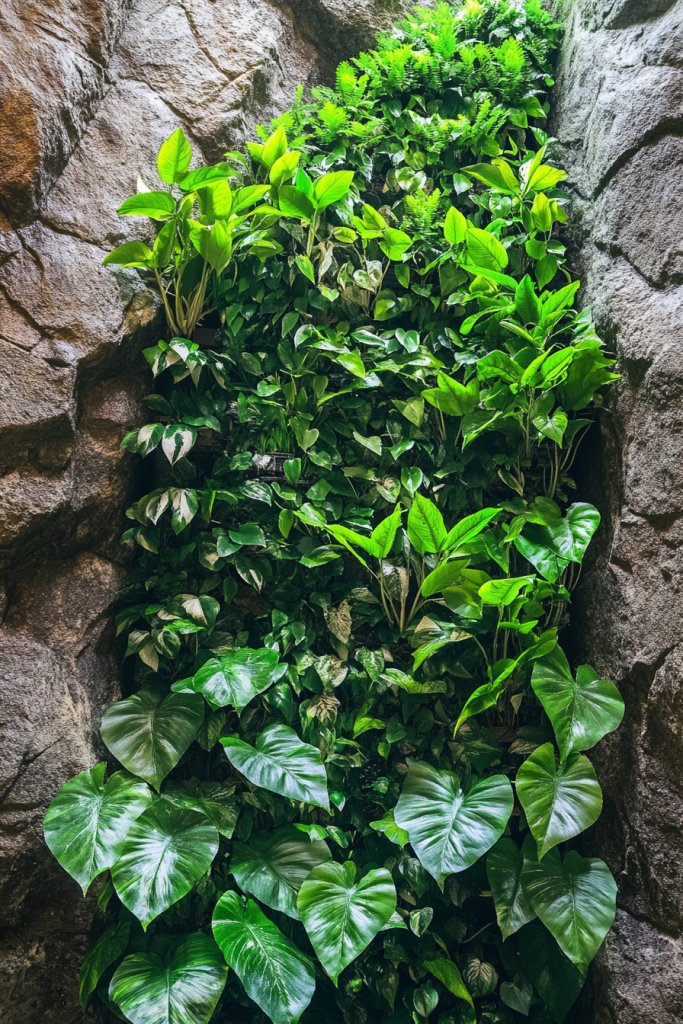 17. Vertical Garden with Stone Background for a Green-Industrial Look