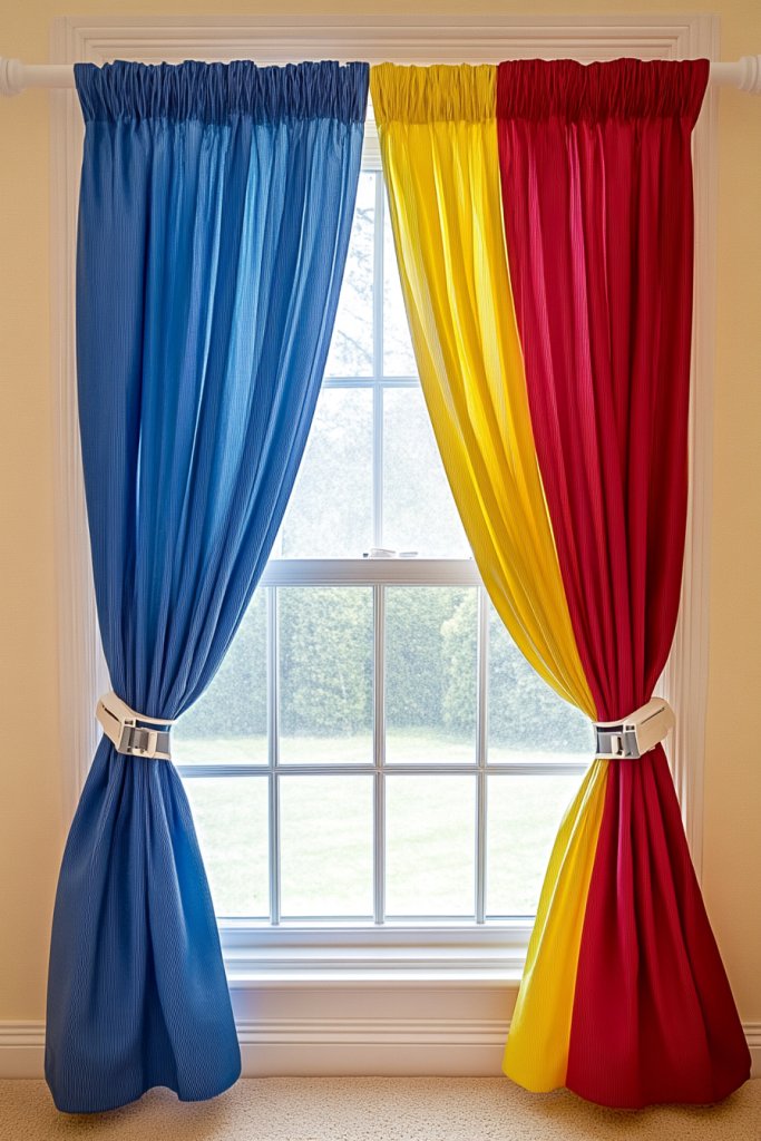 15. Bright, Colorful Curtains with Easy-Open Mechanisms