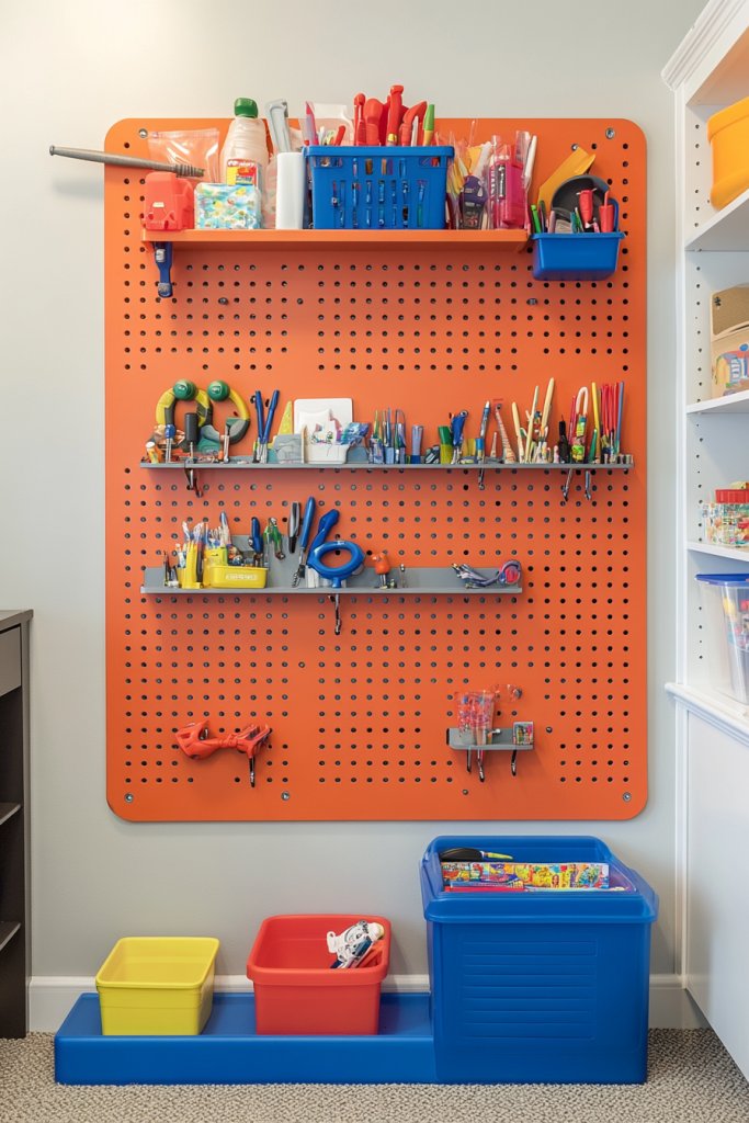 3. Colorful Pegboard Organizers for Easy Toy and Art Storage