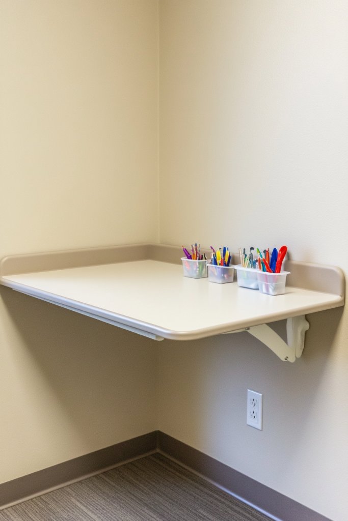 8. Wall-Mounted Art Stations with Easy-to-Clean Surfaces