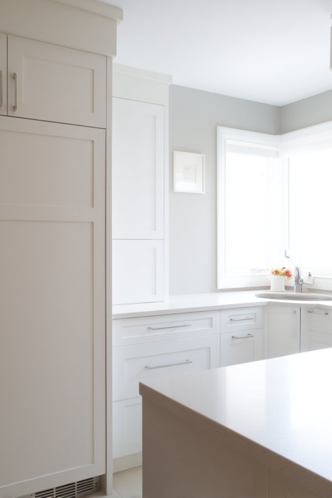 Start with high-quality white cabinetry, opting for soft-close drawers for longevity. Choose a light gray paint or laminate for accents—consider matte or satin finishes. Incorporate complementary hardware in brushed nickel or matte black for a modern touch. Use neutral-toned flooring and simple pendant lighting to enhance brightness. Keep accessories minimal to preserve the clean aesthetic.
