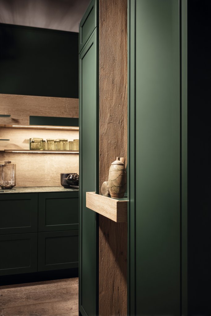 This design elevates your kitchen into a space of refined elegance rooted in nature. It’s perfect for those who appreciate luxury with a natural touch. With deep green and wood, you create a sophisticated, calming environment that’s both inspiring and timeless.