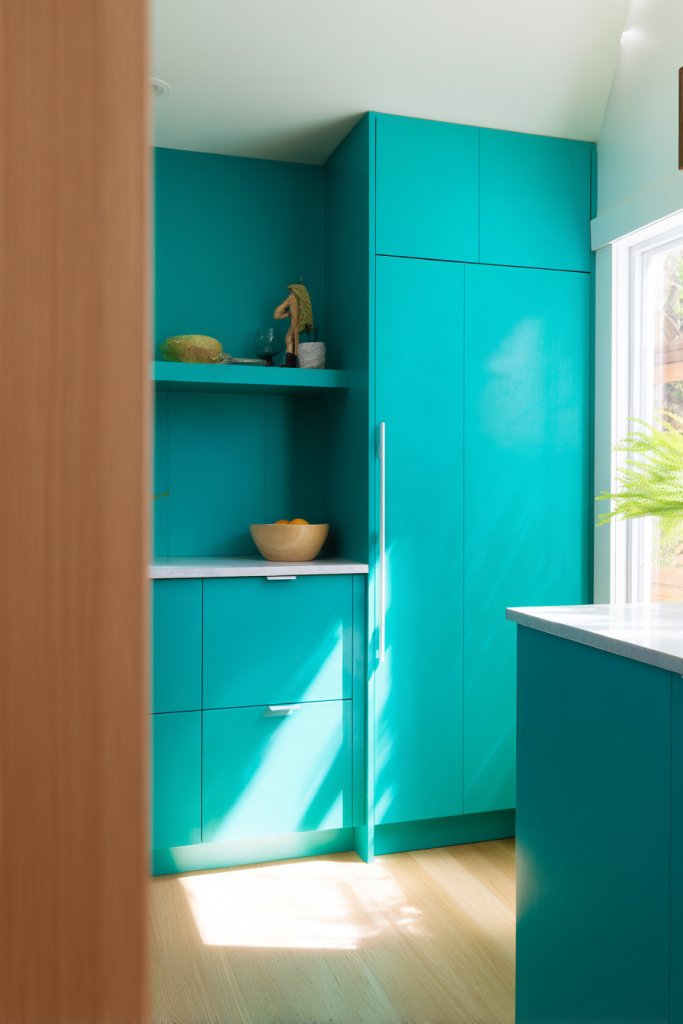 Dreaming of a kitchen that feels like a breezy seaside getaway? Bright aqua combined with white creates a fresh, lively vibe that’s perfect for coastal lovers. It’s a space that energizes and relaxes simultaneously. Ready to bring the beach home?