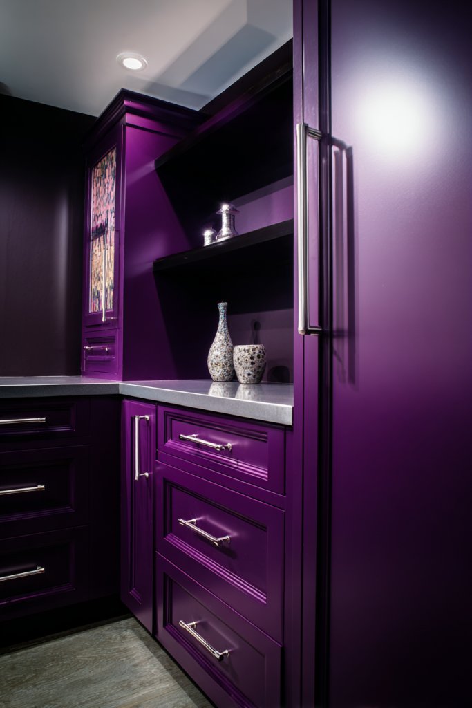 Craving a kitchen that feels bold, luxurious, and full of personality? Deep plum paired with silver creates a dramatic, sophisticated environment that’s both striking and elegant. It’s perfect for those who dare to be different and want their space to leave a lasting impression. Ready to go deep?