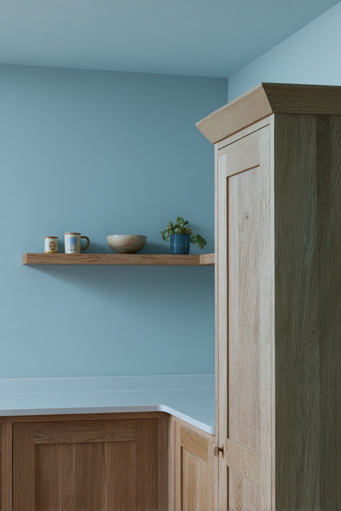 This style turns your kitchen into a peaceful haven, perfect for relaxing and entertaining. It’s a look that balances nostalgia with modern comfort. With pale blue and oak, you’ll create a space that feels both timeless and uniquely yours.