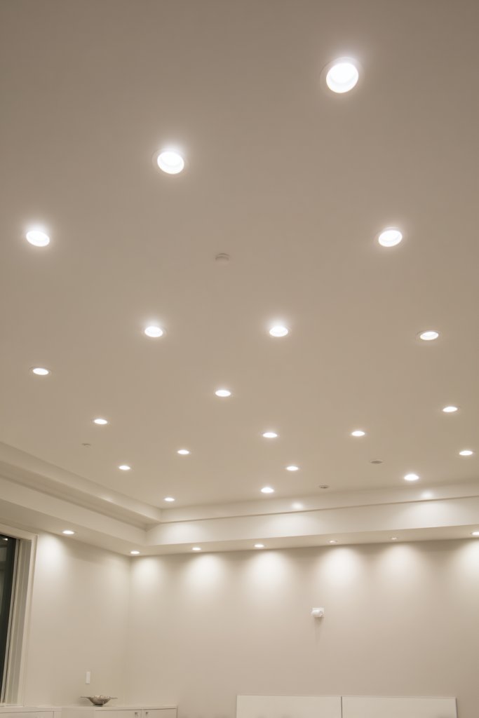 Imagine a ceiling dotted with flush-mounted lights, their trims barely visible against a neutral ceiling. Soft white or warm amber light filters evenly across the room, highlighting textures and architectural details. The dimmer switch lets you transition from bright task lighting to a gentle, relaxing glow—perfect for movie nights or intimate gatherings.