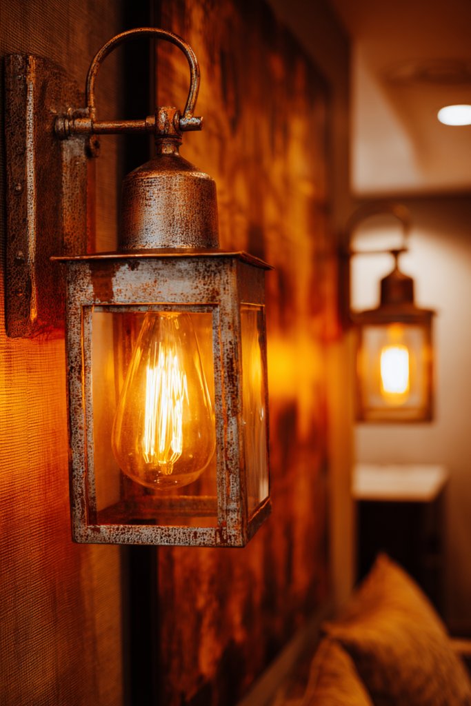 17. Vintage Lantern Sconces with Edison Bulbs for a Warm, Nostalgic Feel