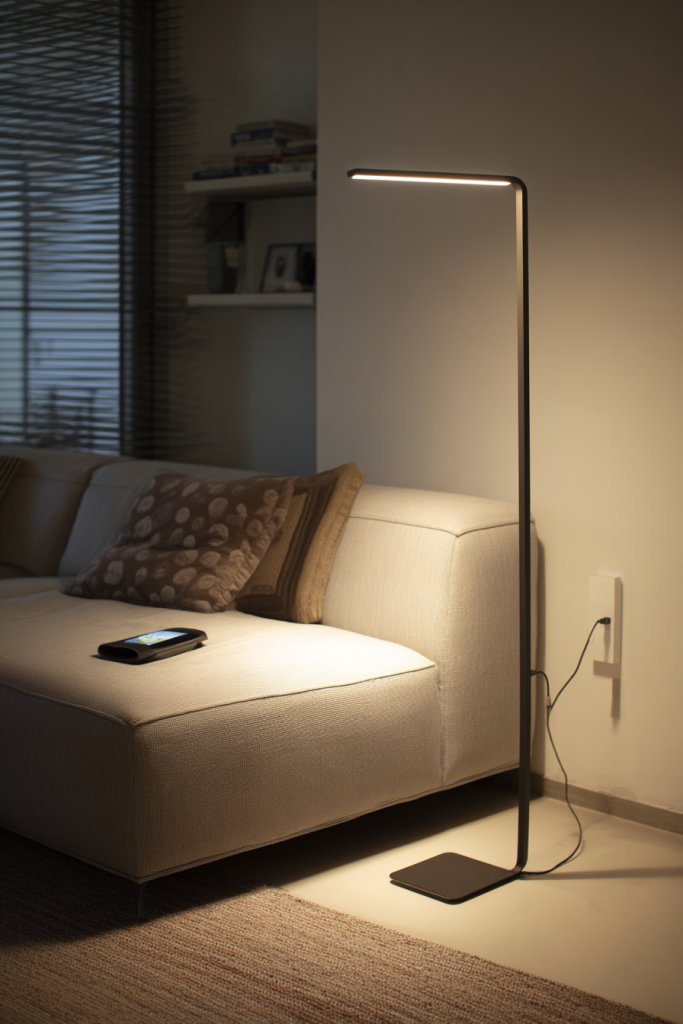 Picture a sleek, slender lamp with a flexible arm, a bright LED head, and a discreet charging station built into the base. The light provides ample illumination for reading or relaxing, while the USB or wireless charging keeps your phone or tablet within reach. Its minimalist design blends seamlessly into contemporary decor.