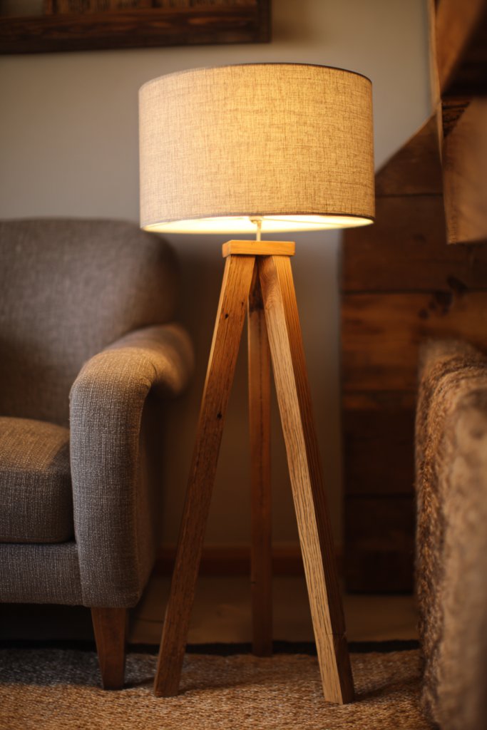 3. Tripod Lamps with Warm Wooden Finishes for a Cozy, Rustic Vibe