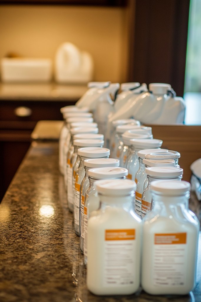 Start by selecting high-quality jars that seal tightly to prevent spills and messes. Label each jar with durable, waterproof stickers or engraved tags. Fill them with your favorite detergents, powders, or softeners, and arrange them neatly on your shelves. Regularly refill and clean the jars to maintain the aesthetic. Reorganize as needed to keep the setup functional.