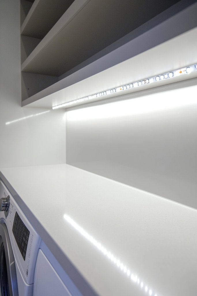Poor lighting can make laundry chores feel like a chore in the dark. Under-shelf LED lighting enhances visibility, making tasks safer and easier. It adds a modern, sleek touch that transforms your laundry space into a bright, inviting area. Who wouldn’t want a well-lit room that feels more cheerful and efficient?