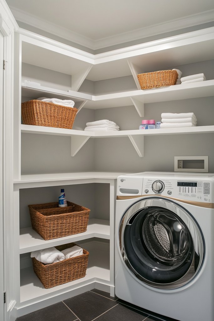Corners often go underused or become dumping grounds for clutter. Corner storage solutions turn awkward spaces into efficient storage zones that maximize your laundry room. They help keep your essentials organized and accessible without sacrificing valuable space. Who wouldn’t want a smarter way to use every inch?