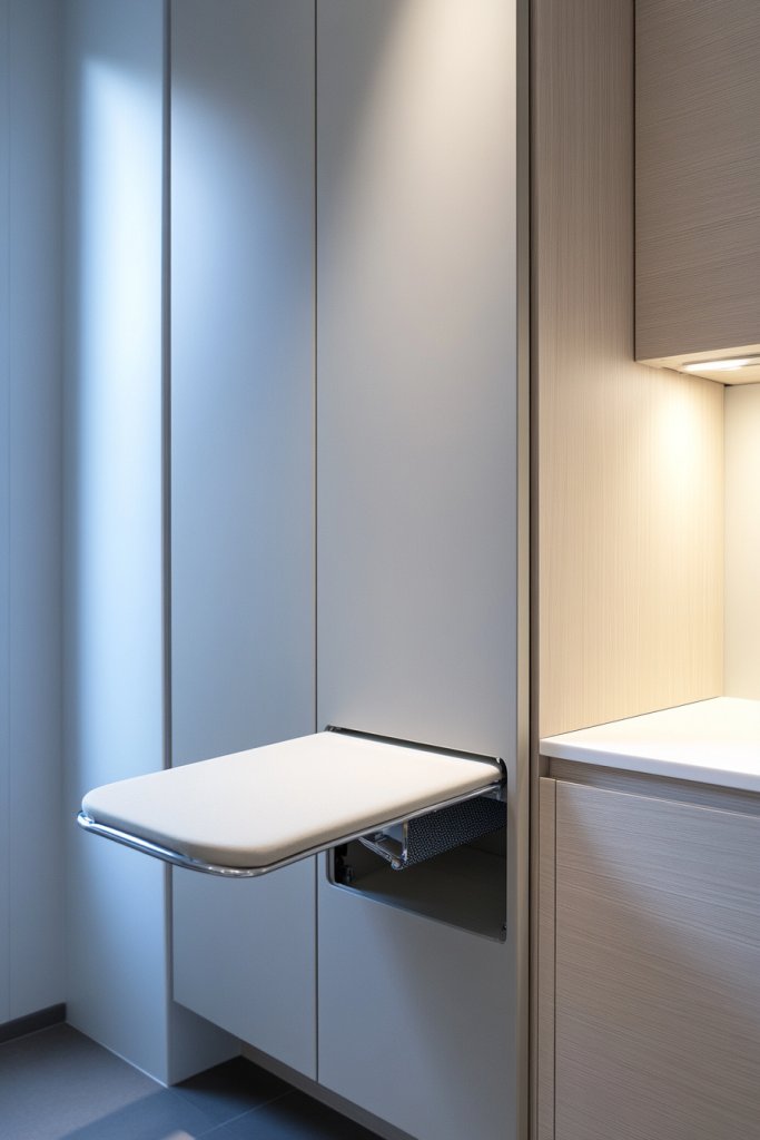Picture a stylish cabinet mounted on the wall with a fold-down ironing surface concealed inside. When needed, you lower the panel, revealing a sturdy, heat-resistant surface ready for quick touch-ups. After use, fold it back into the cabinet, leaving a smooth, streamlined wall. The cabinet can be painted to match your room, with handles or knobs that add a decorative touch.