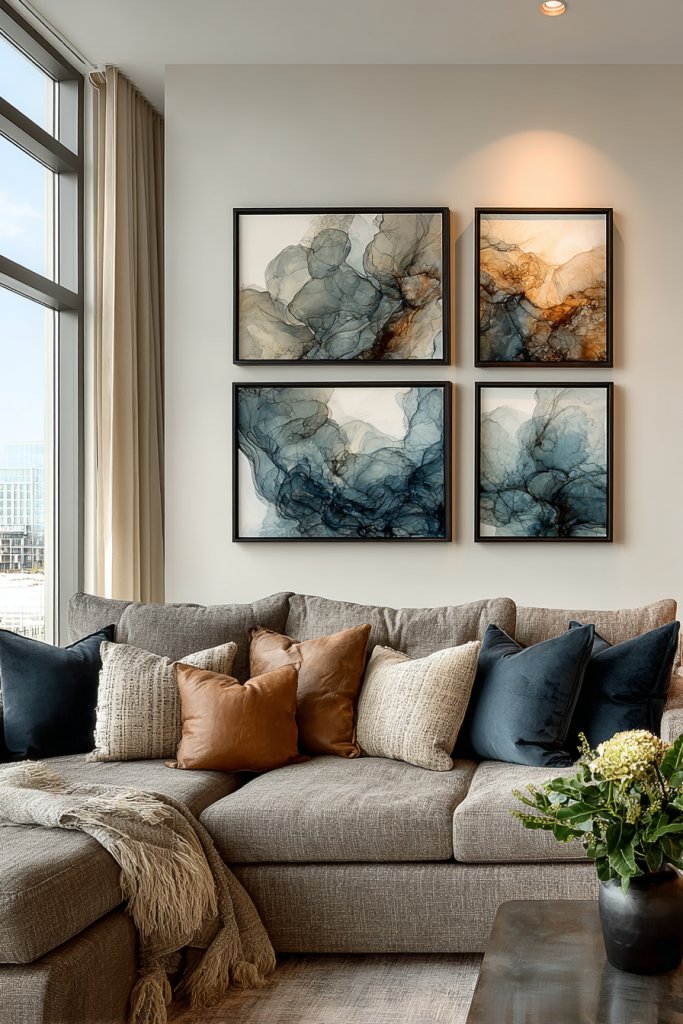 Wish your living room had a flexible, modern art focal point? Modular art panels let you customize your wall decor while offering endless possibilities. They’re perfect for creating a large, impactful statement that can be rearranged or expanded over time. It’s an adaptable solution for evolving tastes.
