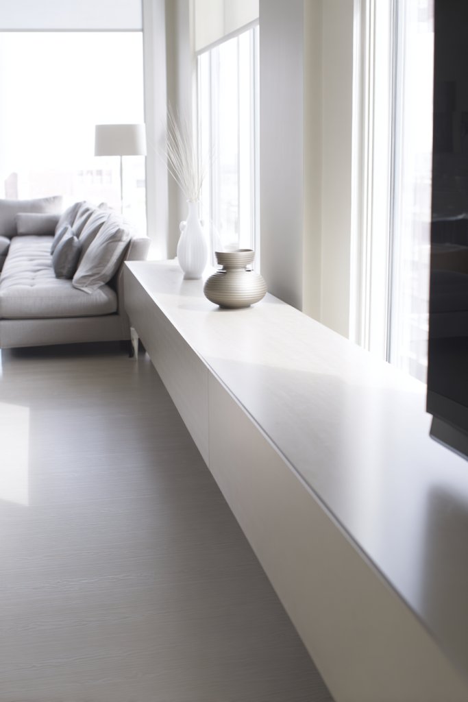 Clutter is the enemy of spaciousness, especially in a long living room. Free-standing furniture can get in the way and make the room look chaotic. Built-in storage offers a sleek solution that keeps belongings out of sight while adding architectural interest.