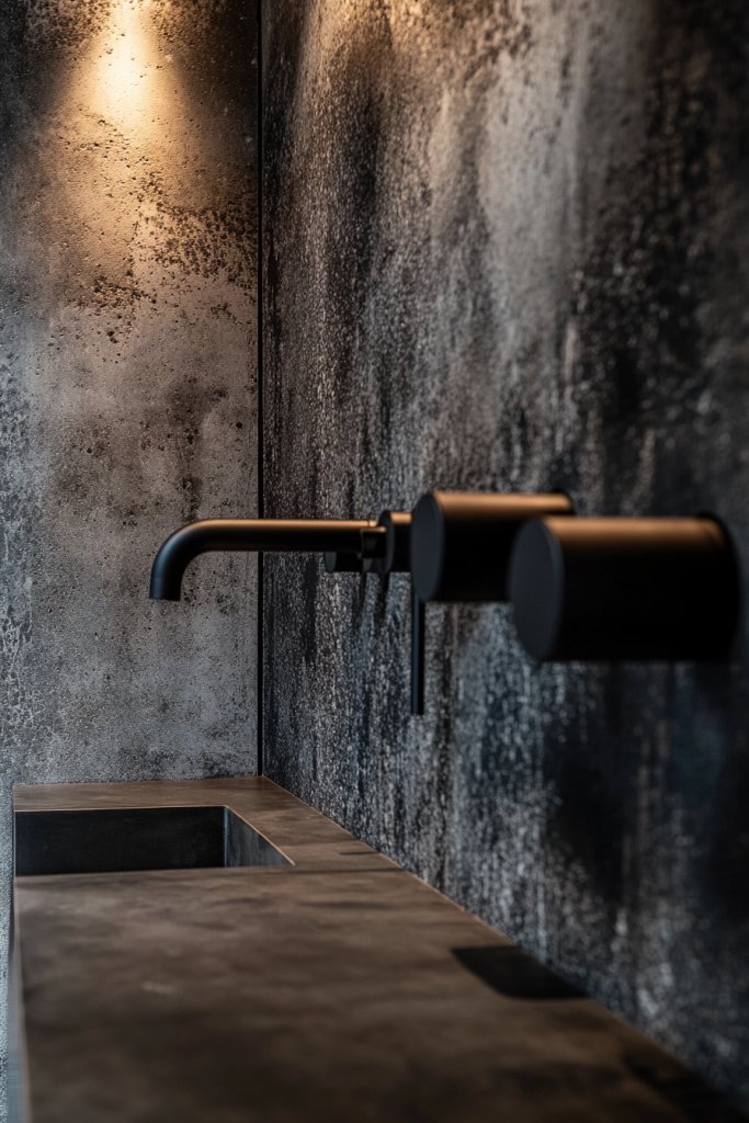 1. Exposed Concrete Walls with Matte Black Fixtures