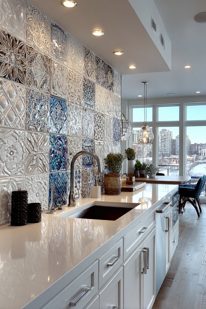 14. Install a Statement Wall with Textured or Patterned Backsplash