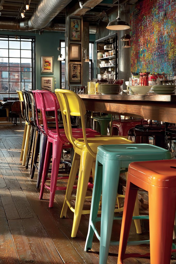 15. Use Colorful Bar Stools or Dining Chairs for Visual Pop