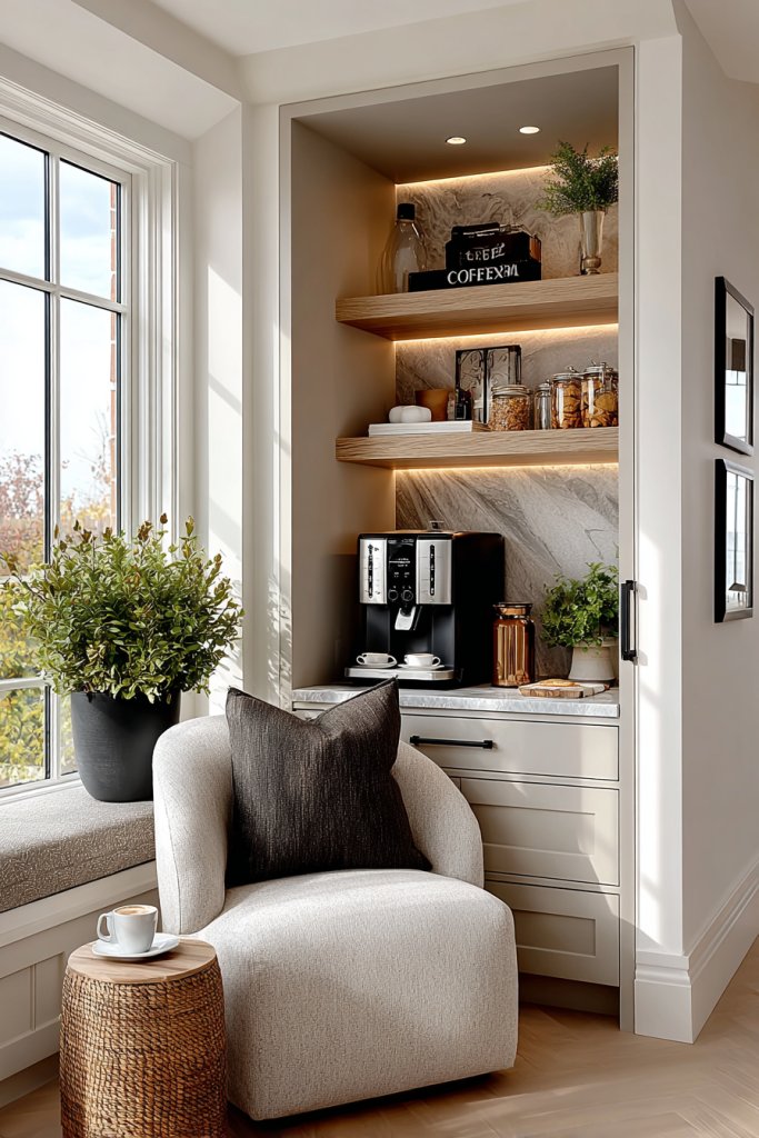 A dedicated social zone encourages informal gatherings and makes everyday routines more pleasant. It’s a quick upgrade that adds warmth and personality. Plus, it helps create a homey, relaxed atmosphere that everyone appreciates. Ready to sip and chat?