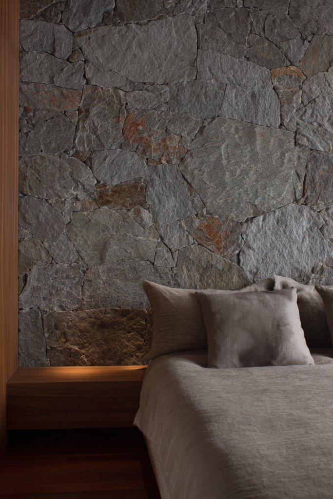 Picture a sleek bedside table made of polished marble or a decorative bowl carved from travertine. Layered stone elements like a textured stone wall or a small stone sculpture add tactile depth. The colors—warm beige, cool gray, or earthy terracotta—blend seamlessly with organic or neutral schemes. The natural patterns and textures ground the space visually and physically.