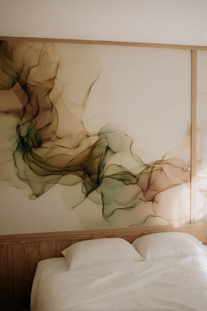 Select simple, high-quality prints or textured panels that evoke nature or abstract forms. Mount using discreet hardware to keep the focus on the art. Keep spacing balanced for a harmonious look. Avoid clutter by limiting wall decor to a few well-chosen pieces. Use lighting—like wall sconces—to highlight the art subtly.