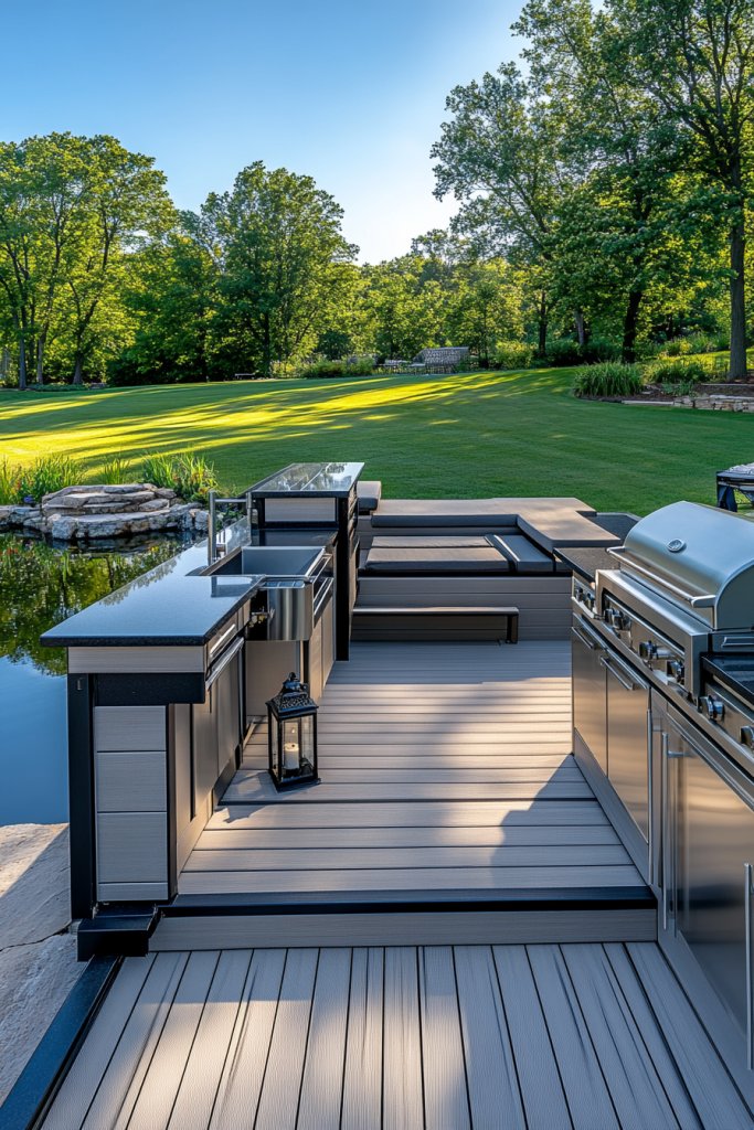 Looking for a stunning way to elevate your outdoor cooking space? A floating deck kitchen with integrated appliances and seating transforms your backyard into a luxurious outdoor lounge. It provides a seamless blend of style and function, perfect for entertaining and relaxing alike. Ever wondered how to make your outdoor setup stand out?