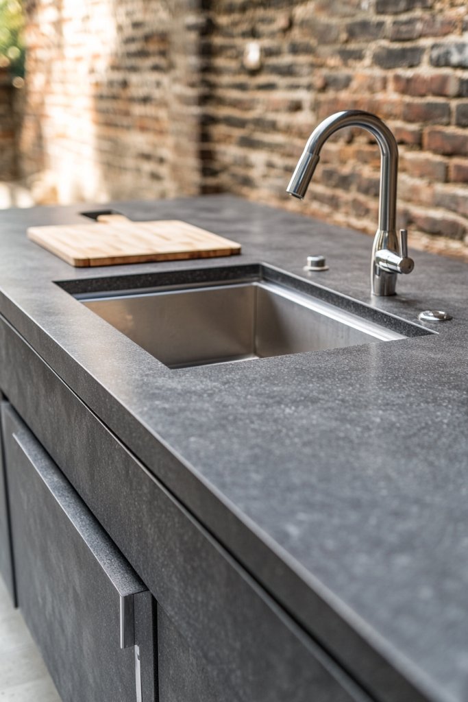 4. Concrete Countertop with Integrated Sink and Prep Area